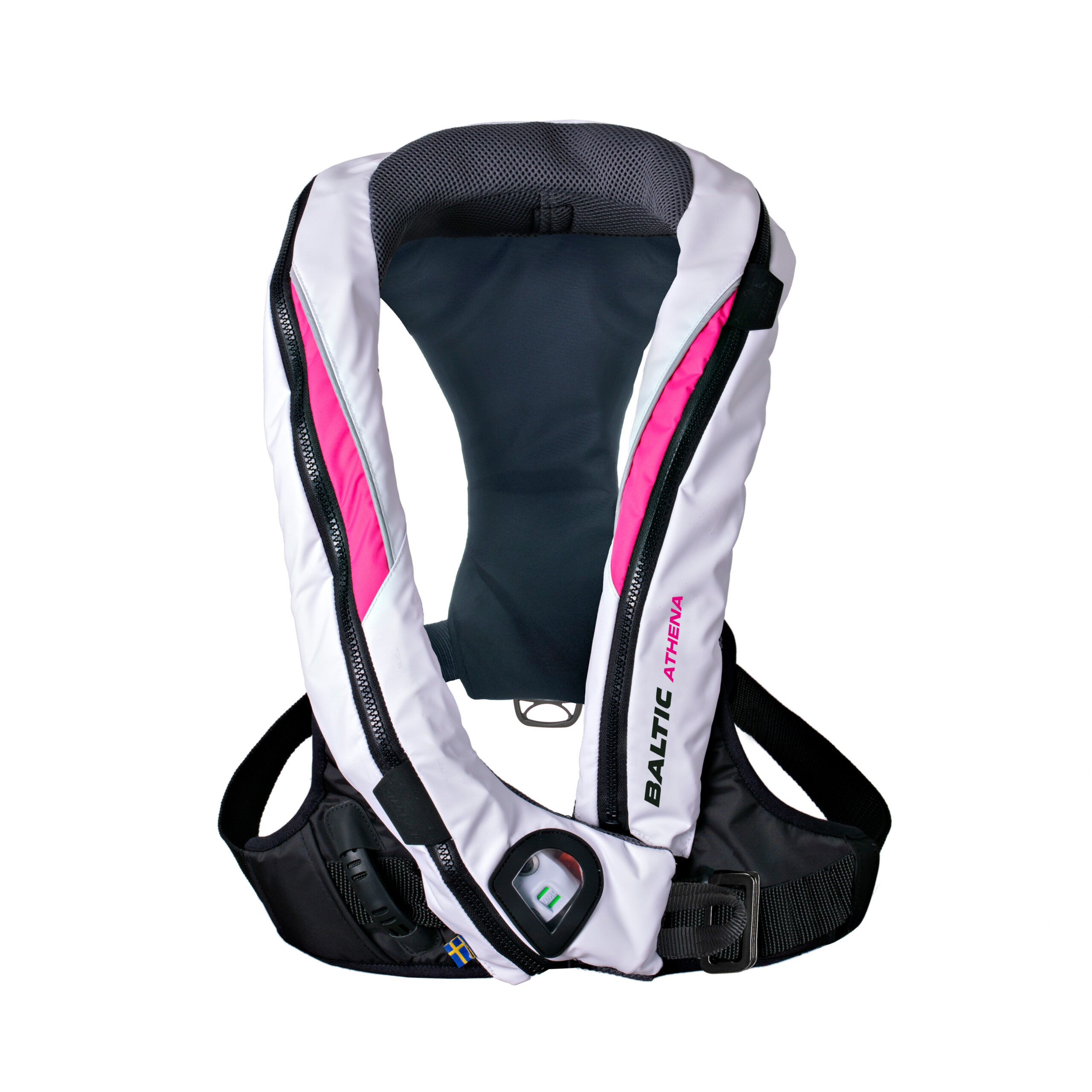 Säkerhet: Med en bärförmåga på 165N är Athena 165 Sele en pålitlig räddningsväst som möter höga säkerhetskrav. Den integrerade säkerhetsselen ger ytterligare trygghet under intensiva aktiviteter. Västen är designad med ventilen och patronen placerade under bysten för att säkerställa både smidighet och en optimal passform.